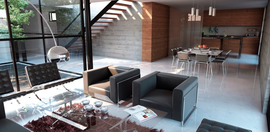 付属品や装飾品で完全なインテリア空間をレンダリングします。