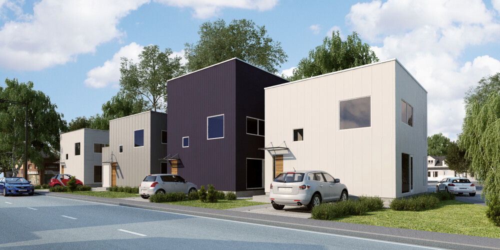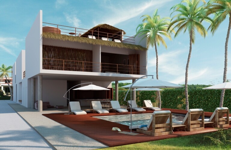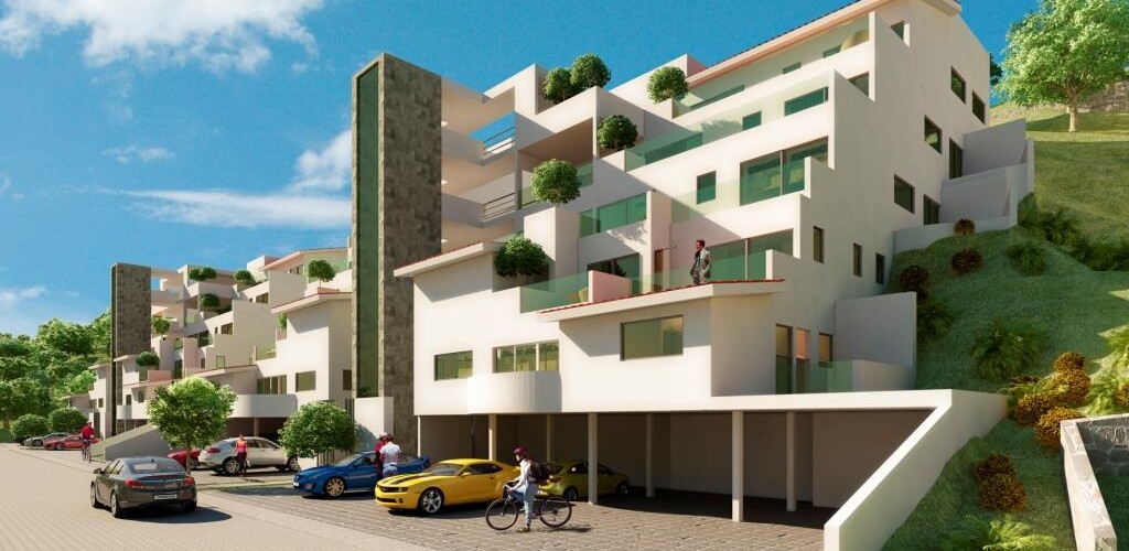 すべての外部環境(車、樹木、芝生など)と外から見れるすべてのインテリア空間、および照明を含む外観をレンダリングします。
