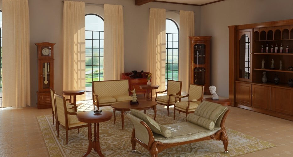 クライアントの提案された空間内(リビングルーム、ダイニング、オフィスなど)に設定された製品(家具、オブジェクト)の基本的なモデリングが含まれています。